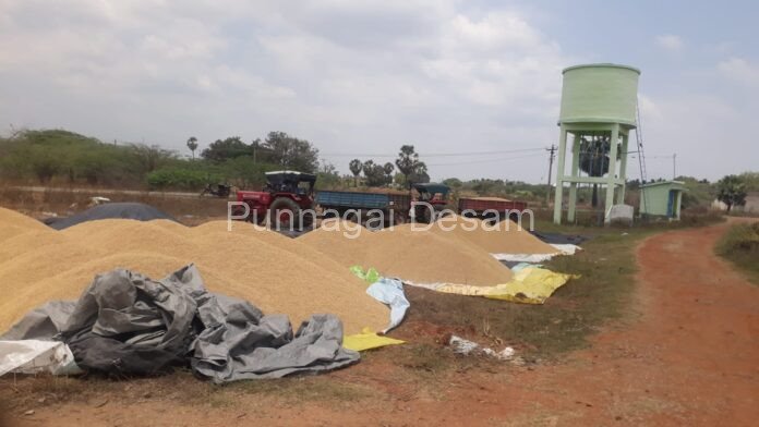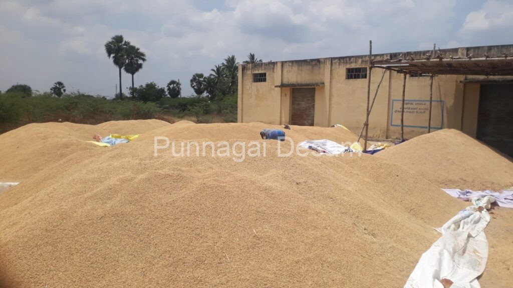 தூத்துக்குடி மாவட்ட ஆட்சியர் ஒப்புதல் வழங்கிய இரு தினங்களுக்குள் நெல் கொள்முதல் நிலையம் திறக்கப்படும் என தமிழ்நாடு நுகர்பொருள் வாணிபக் கழக சார்பில் தெரிவிக்கப்பட்டதன் காரணமாக விவசாயிகள் அறுவடை செய்த நெல்லை, நெல் கொள்முதல் நிலைய களத்தில் கொண்டு வந்து கொட்டினர்