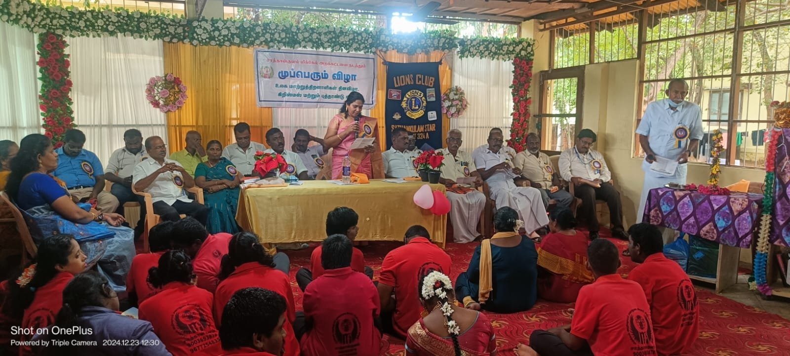 சாத்தான்குளம் நட்சத்திர அரிமா சங்கத்தின் சார்பாக சிறப்புப் பள்ளி குழந்தைகளுக்கு சீருடைகள் பணியாற்றும் பணியாளர்கள் மற்றும் ஆசிரியர்களுக்கு நினைவுப் பரிசுகள் மற்றும் புத்தாண்டு பட்டாசுகள் இனிப்புகள் வழங்கப்பட்டன.