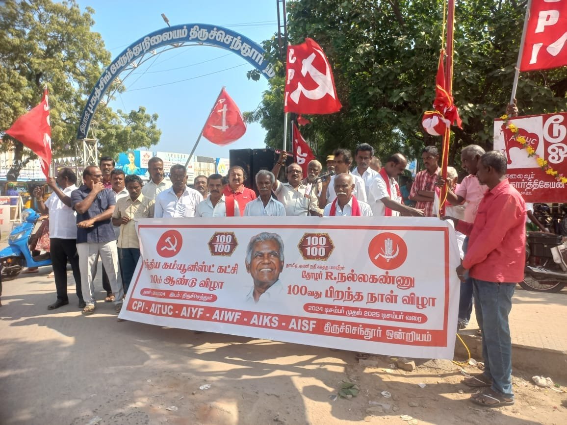 இந்திய கம்யூனிஸ்ட்டு கட்சியின் 100ஆம் ஆண்டு விழா விடுதலை போரட்ட வீரர் தோழர் R.நல்லகண்ணு அவர்கள் 100வது பிறந்த நாள் நிகழ்ச்சி 26/12/2024 திருச்செந்தூர் பகத்சிங் பேருந்துநிலையத்தில் வைத்து கொடி ஏற்றுதல் பொதுமக்களுக்கு இனிப்பு வழங்கி நடைபெற்றது Post navigation நீதிமன்ற வளாகத்தில் காவல்துறையினரின் பாதுகாப்பு பணிகளை மாவட்ட காவல் கண்காணிப்பாளர் ஆல்பர்ட் ஜான் நேரில் சென்று ஆய்வு திருநெல்வேலி தூய யோவான் மேல்நிலைப்பள்ளியில் பழைய மாணவர் சங்க கூட்டம்