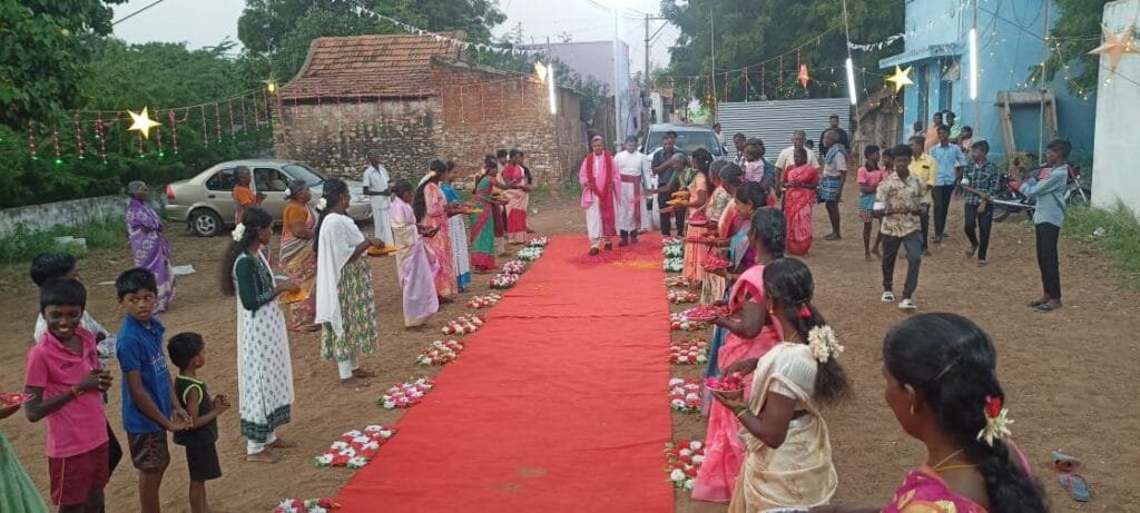 கூவைகிணறு புனித பாத்திமா ஆலயத்திற்கு தூத்துக்குடி மறை மாவட்ட ஆயர் ஸ்டீபன் அந்தோணி சனிக்கிழமை மாலை வருகை தந்து சபை மக்களுடன் உரையாடினார்