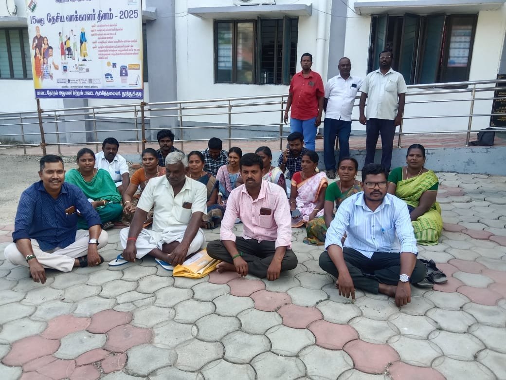 மாநில பொருளாளர் விஜயமூர்த்தி, வட்ட பொருளாளர் தாமரைச்செல்வி ஆகியோர் போராட்டம் குறித்து எடுத்துரைத்தனர்.