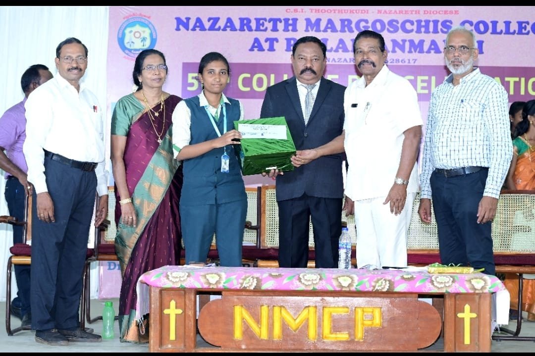 மனோன்மணியம் சுந்தரனார் பல்கலைக்கழக அளவில் இளங்கலை கணிதவியல் பாடப்பிரிவில் இரண்டாம் இடம் பிடித்த ரேச்சல் ஆக்னஸ் மற்றும் இளங்கலை வேதியியல் பாடப்பிரிவில்; பன்னிரெண்டாவது இடம் பிடித்த கிரேஸ் ஆகியோருக்கு ரொக்க பரிசுகள் வழங்கப்பட்டது.