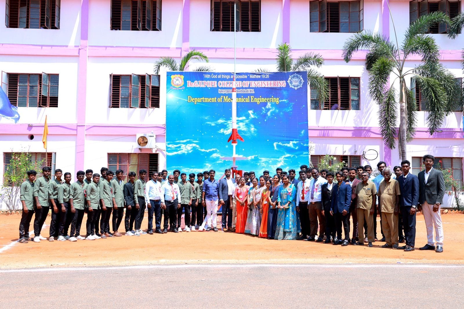 சாயர்புரம் டாக்டர். ஜி. யு. போப் பொறியியல் கல்லூரியில் இறுதி ஆண்டு மாணவர்கள் மாதிரி விண்கலம் மற்றும் செயற்கைக்கோள் முதற்கட்ட வடிவமைப்பை புதிய தொழில்நுட்பத்தை பயன்படுத்தி செய்துள்ளனர்.
