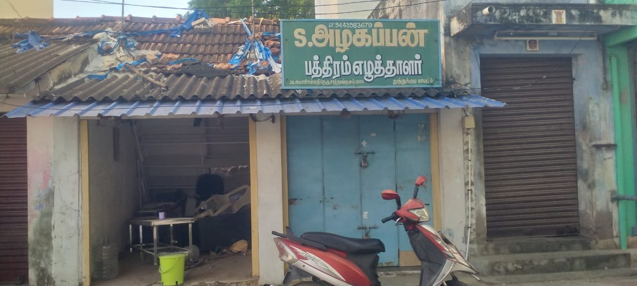 சாத்தான்குளத்தில் பழைய பேருந்து நிலையம் அருகே சார் பதிவாளர் அலுவலகம் எதிரே அழகப்பன் என்பவர் பத்திரம் எழுதும் அலுவலகம் நடத்தி வருகிறார்