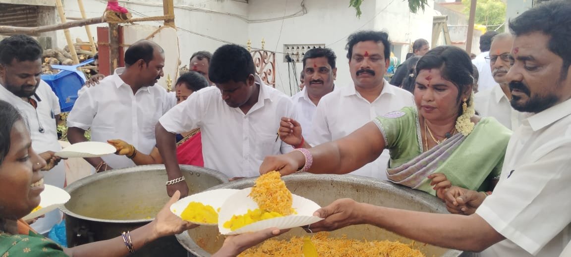மாவட்டச் செயலாளர் ராஜினி மற்றும் வழக்கறிஞர் பிரிவு இளையராஜா ஆகியோர் ஏற்பாட்டில் நடைபெற்ற அன்னதான நிகழ்ச்சியில் திருவள்ளூர் கிழக்கு மாவட்ட முன்னாள் மாவட்ட தலைவர் செந்தில்குமார் சிறப்பு விருந்தினராக கலந்து கொண்டு காப்பு கட்டிய பக்தர்களுக்கும் பொதுமக்களுக்கும் அன்னதானம் வழங்கினார்.