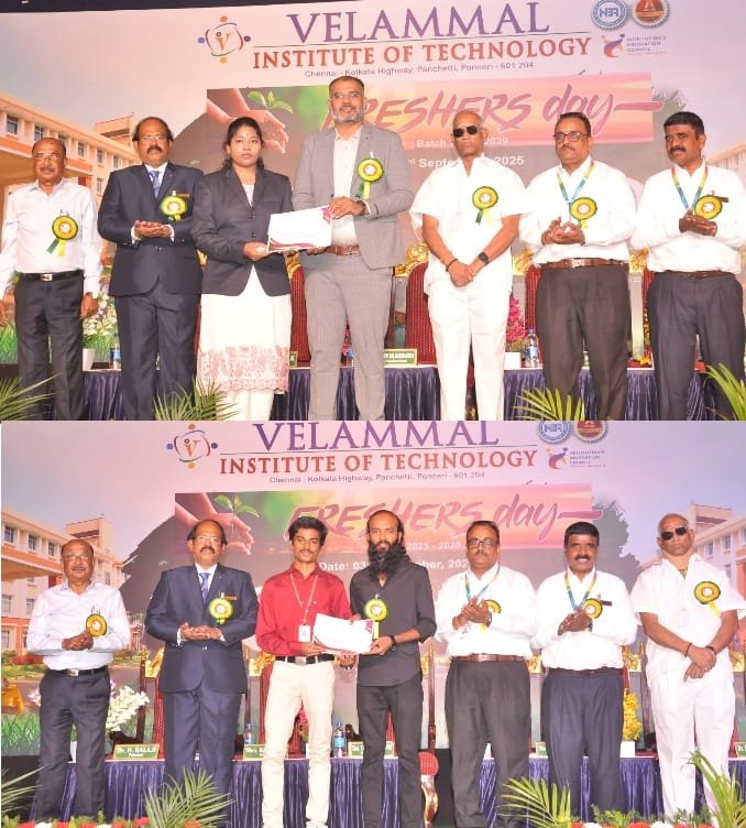 திருவள்ளூர் மாவட்டம்,பொன்னேரி வேலம்மாள் தொழில் நுட்பக் கல்லூரியில் முதலாமாண்டு மாணவர்களை வரவேற்கும் தினம் வேலம்மாள் தொழில்நுட்பக் கல்லூரியில் வெகு சிறப்பாக நடத்தப்பட்டது.
