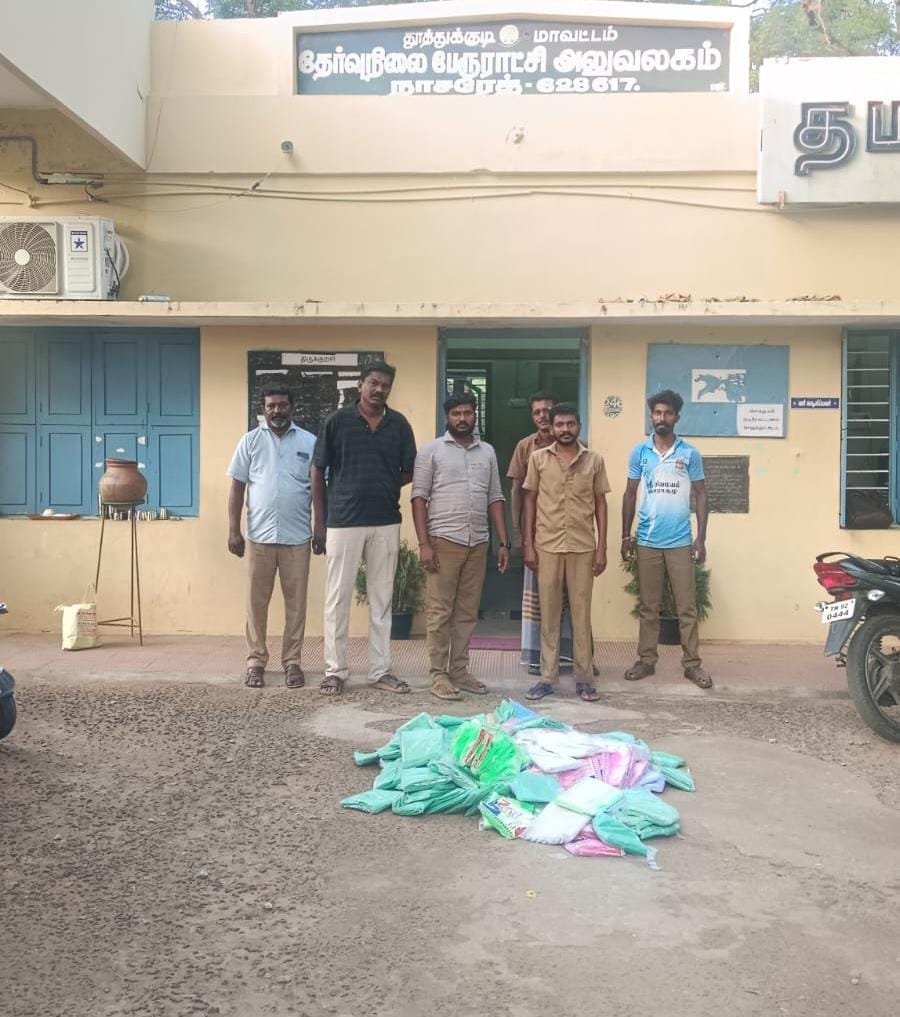 நாசரேத் பஜாரில் அதிரடி சோதனை மேற்கொண்டதில் 55 கிலோ பிளாஸ்டிக் பொருட்கள் பறிமுதல் செய்யப்பட்டது.