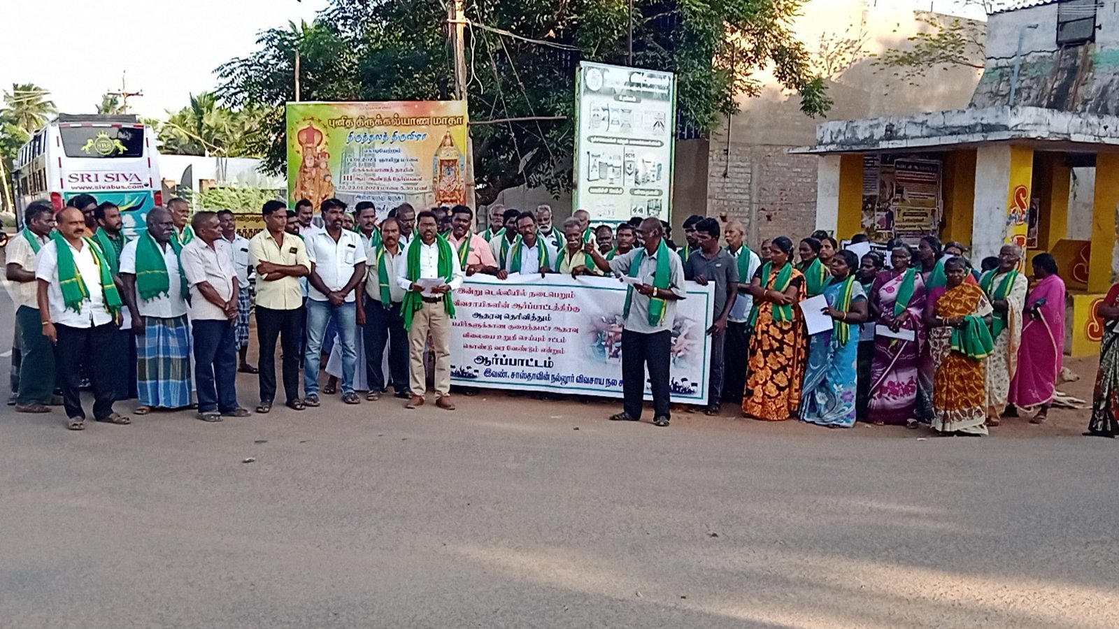 டெல்லியில் விவசாயிகள் விவசாய பொருள்களுக்கான குறைந்தபட்ச ஆதரவு விலையை உறுதி செய்யும் சட்டம் கொண்டு வர வேண்டும் என வலியுறுத்தி கண்டன ஆர்ப்பாட்டத்தில் ஈடுபட்டு வருகின்றனர். இந்த நிலையில் டெல்லி விவசாயிகள் நடத்தி வரும் ஆர்ப்பாட்டத்திற்கு ஆதரவு தெரிவிக்கும் வகையில் சாத்தான்குளம் அருகே சாஸ்தாவிநல்லூர் விவசாய நல சங்கத்தின் சார்பில் நூற்றுக்கணக்கான விவசாயிகள் மற்றும் பொதுமக்கள் கண்டன ஆர்ப்பாட்டத்தில் ஈடுபட்டு வருகின்றனர். இதில் மத்திய அரசுக்கு எதிராக கண்டன கோஷங்கள் எழுப்பப்பட்டு வருகிறது. இந்த ஆர்ப்பாட்டத்தில் சங்கத்தின் தலைவர் எட்வின் காமராஜ் அறிவுறுத்தலின் பேரில் சங்க செயலாளர் லூர்து மணி தலைமை வகித்தார். இதில் துணைத் தலைவர் ரவிச்சந்திரன், இயற்கை விவசாயி செந்தில், அதிசயபுரம் விவசாய சங்க தலைவர் செந்தில், சங்க செயலாளர் ஜான் ஆசிரியர், எட்வர்ட் லாரன்ஸ், சங்க பொருளாளர் ரூபேஷ்குமார், சங்க செயலாளர் ஜஸ்டின் ஜெயராஜ், செயற்குழு உறுப்பினர்கள் சந்தன திரவியம், அலெக்ஸ், ஜெயக்குமார், செல்வ ஜெகன், கொழுந்தட்டு விவசாய சங்க தலைவர் ராகவன், எள்ளு விலை விவசாய சங்க செயலாளர் பெருமாள், கொழுந்தட்டி விவசாய சங்க செயலாளர் சந்தன மரியான், உறுப்பினர்கள் அம்புரோஸ், சவரிராஜன், ஜெயராஜ் மற்றும் பெல்சிய.ா, ரூபி உள்ளிட்ட விவசாயிகள் பலர் கலந்து கொண்டனர்.