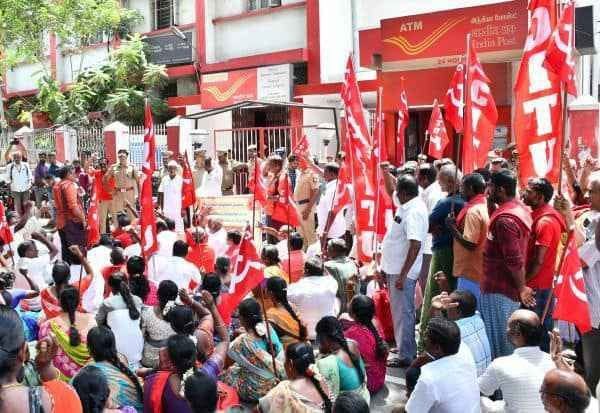 அந்த தொழிலாளர்களுக்கு ஆதரவாக, திருப்பூர், குமரன் சிலை முன்பு துவங்கி, தபால் அலுவலகம் வரை சி.ஐ.டி.யு.,வினர் மறியல் போராட்டம் நடத்தினர்.சி.ஐ.டி.யு., மாவட்ட தலைவர் மூர்த்தி தலைமை வகித்தார். மாவட்ட செயலாளர் ரங்கராஜ், பேசினார். சாம்சங் நிறுவன தயாரிப்பு மொபைல் போன்களை, சாலையில் போட்டு உடைத்தனர். அதன்பின், 200 பேரை போலீசார் கைது செய்து, திருமண மண்டபம் ஒன்றில் தங்க வைத்தனர்..