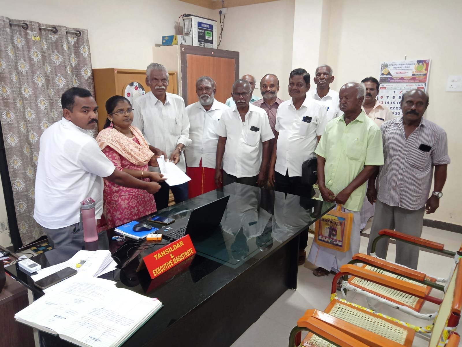 எனவே சாத்தான்குளத்திலிருந்து முதலூர், பொத்தக்காலன்விளை, போலையர்புரம், தட்டார்மடம், கொம்மடிக்கோட்டை, சொக்கன்குடியிருப்பு, மணிநகர், சுண்டங்கோட்டை, படுக்கப்பத்து வழியாக பெரியதாழைக்கு அரசு பஸ் இயக்க நடவடிக்கை எடுக்க வேண்டும் என தமிழ்நாடு அரசு அனைத்து துறை ஓய்வூதியர் சங்க மாவட்ட இணைச் செயலாளர் ஜெயபால் தலைமையில் வட்டத் தலைவர் தேவ சமாதானம், வட்ட துணைத் தலைவர் பாண்டியன், இணைச்செயலாளர் கிறிஸ்டோபர், அரசு ஊழியர் சங்க முன்னாள் வட்டச் செயலாளர் பாலகிருஷ்ணன், ஓய்வு பெற்ற மின் ஊழியர் நல அமைப்பு மாநில துணைத் தலைவர் ஜெய பாண்டியன், ஓய்வு பெற்ற டவுன் பஞ்சாயத்து செயல அலுவலர் முருகேசன், ஓய்வு பெற்ற வன இலாகா ஊழியர் காந்திமதி நாதன், ஓய்வு பெற்ற ஆசிரியர் சுடலைக்கண், நெடுஞ்சாலைத்துறை முத்துராமலிங்கம் உட்பட ஓய்வு பெற்ற அலுவலர் சங்க நிர்வாகிகள் சாத்தான்குளம் தாசில்தார் இசக்கி முருகேஸ்வரியை நேரில் சந்தித்து கோரிக்கை மனு அளித்தனர். மனுவைப் பெற்றுக் கொண்ட தாசில்தார் உரிய நடவடிக்கைக்கு பரிந்துரை செய்வதாக தெரிவித்தார். வட்ட வழங்கல் அலுவலர் பிரபு உடனிருந்தார்.