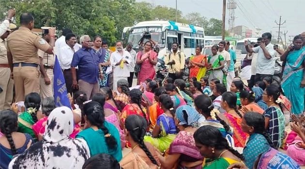 அனுமதி இன்றி உண்ணாவிரதப் போராட்டத்தில் ஈடுபட்டதாக கூறி போலீசார் 200க்கும் மேற்பட்டோரை கைது செய்து தனியார் திருமண மண்டபத்திற்கு அழைத்துச் சென்றனர்.